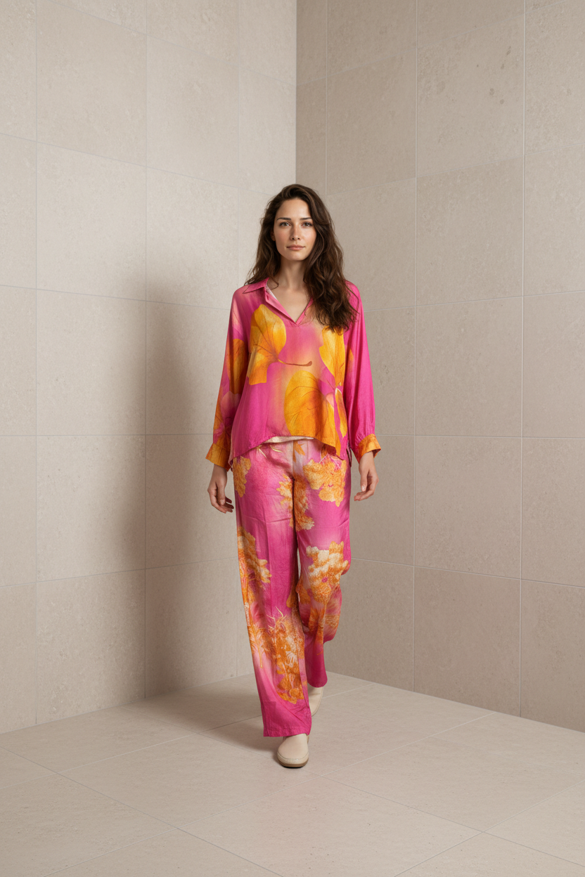 Broek en blouse in dezelfde serie verkrijgbaar.